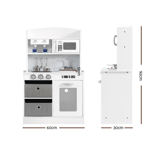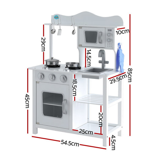 Keezi Kids Kitchen Play Set Wooden Pretend Toys Cooking Children Storage White