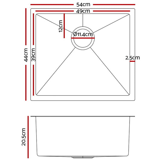 Cefito Handmade Kitchen Sink Stainless steel Sink 44cm x 45cm