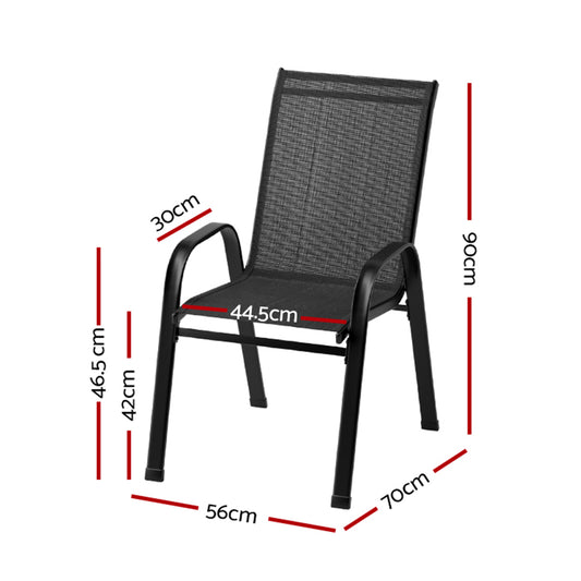 Gardeon 4PC Outdoor Dining Chairs Stackable Lounge Chair Patio Furniture Black