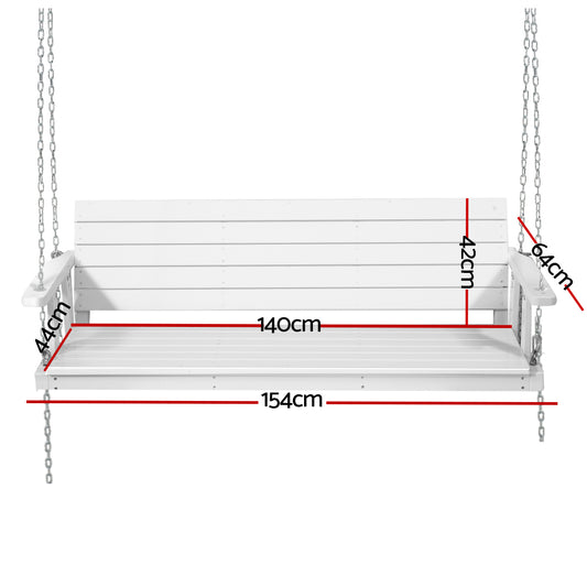Gardeon Porch Swing Chair with Chain Outdoor Furniture 3 Seater Bench Wooden White