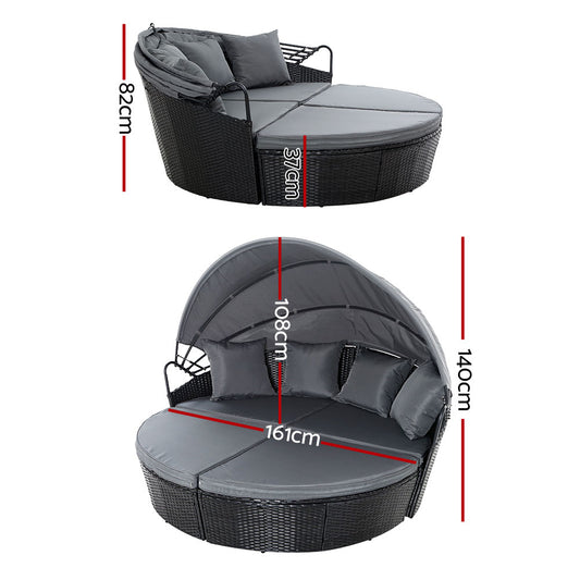 Gardeon Sun Lounge Setting Wicker Lounger Day Bed Outdoor Furniture Patio Black