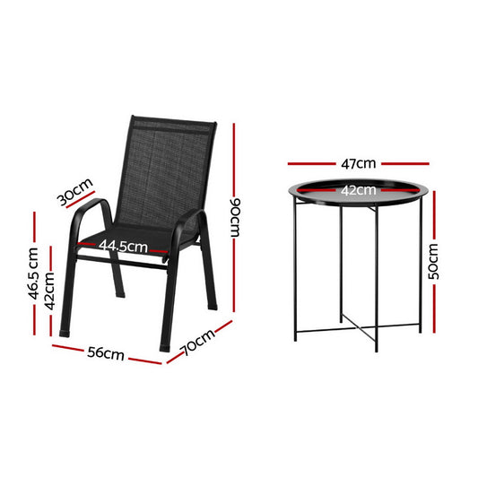Gardeon 3PC Outdoor Bistro Set Table and Chairs Stackable Patio Furniture Black