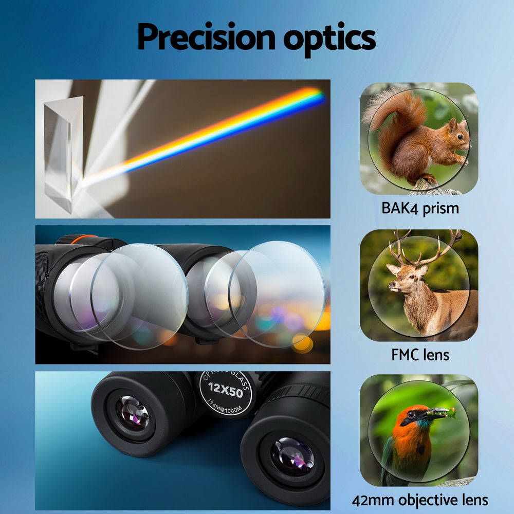 12X50 HD Zoom Optical Binocular Telescope Portable Camping Live Concert