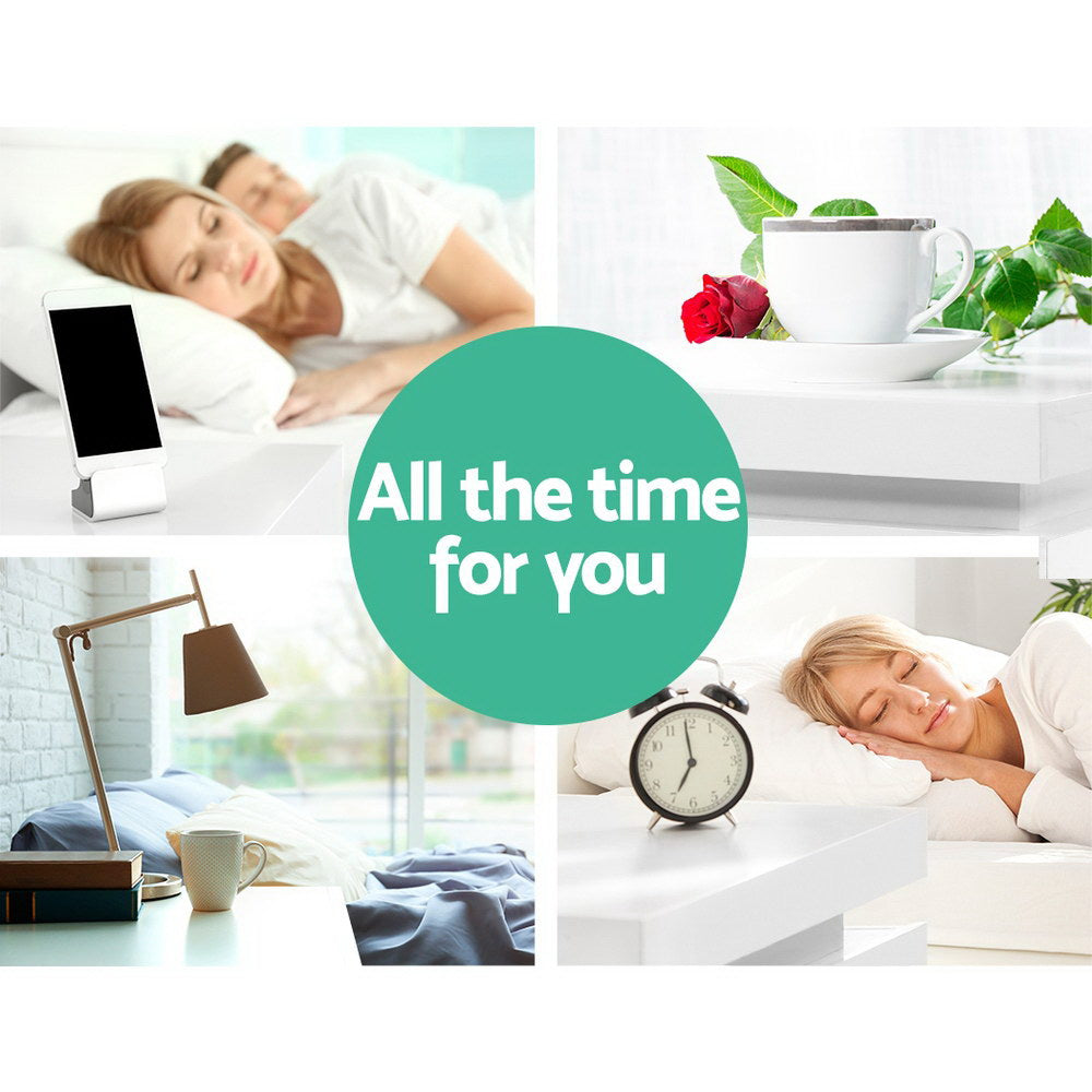 Artiss Bedside Table LED 3 Drawers - COLEY White