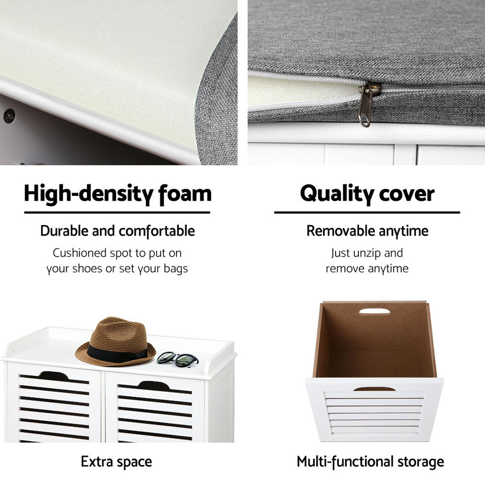 Artiss Shoe Rack Cabinet Bench White Caye