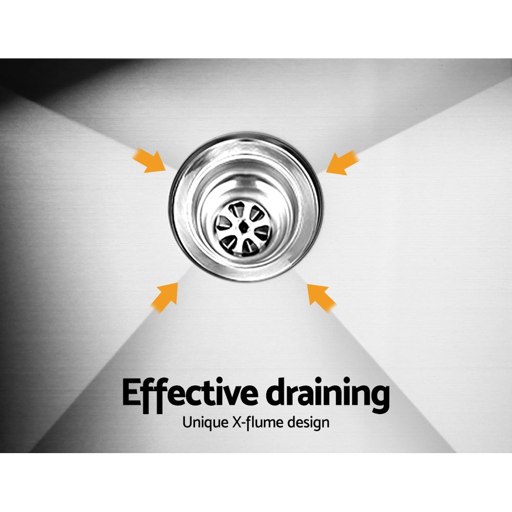 The Cefito Handmade Stainless Steel Sink is built to exacting standards so that you get the very best of quality materials and craftsmanship. It is crafted from heavy-duty food grade 304 stainless steel, unlike others that are made from inferior 201 grade or 304 imitations. Built to be scratch-proof, oil-proof and more importantly, bacteria-free, the silky-smooth satin-coated stainless-steel sink also features an X-flume design for easy drainage, deep and wide bowl for practicality, R10 rounded corners for safety and easy cleaning, eco-friendly anti-condensation paint, and five sound-deadening pads. Suitable for drop-in or under-mount installation, our sink should have a definitive place in your uncompromising kitchen.