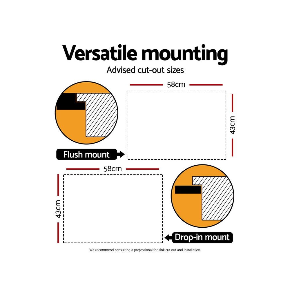 Cefito 60cm x 45cm Stainless Steel Kitchen Sink Flush/Drop-in Mount Silver