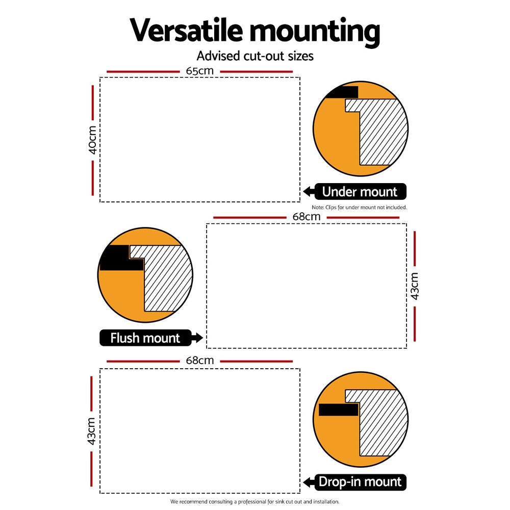 The Cefito Stainless Steel Sink is built to exacting standards so that you get the very best of quality materials and craftsmanship. It is crafted from heavy-duty food-grade 304 stainless steel comprising a minimum of 18% chromium and 9% nickel. The surface is nano-coated to be scratch-proof, oil-proof and more importantly, bacteria-free. The 3mm thick sink also features an X-flume design for easy drainage, eco-friendly anti-condensation paint, sound-deadening pads and R10 rounded corners for safety and easy cleaning. Suitable for drop-in, flush-mount or under-mount installation, our stainless steel sink should have a definitive place in your uncompromising kitchen.