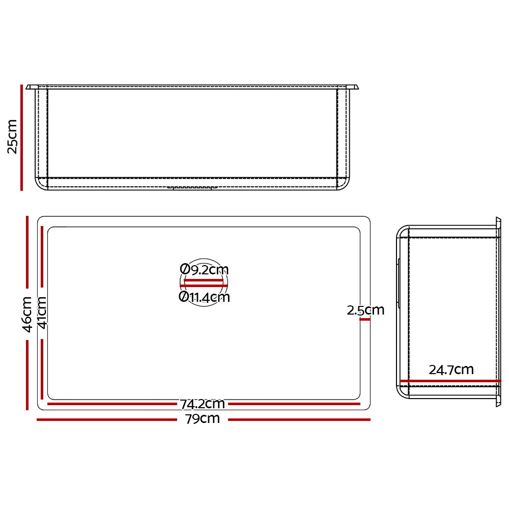 Cefito Stone Kitchen Sink 790X450MM Granite Under/Topmount Basin Bowl Laundry Black