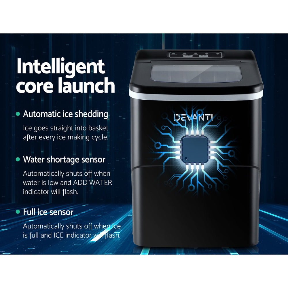 DEVANTi Portable Ice Cube Maker Machine 2L Home Bar Benchtop Easy Quick Black
