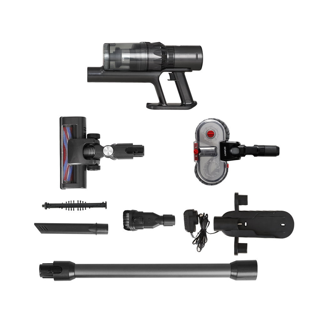 Includes sofa brush, long crevice brush, effective dual mop head and wall-mounted holder