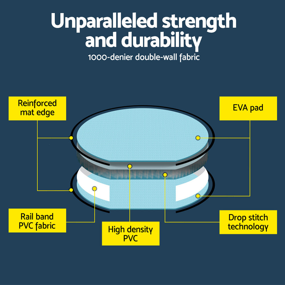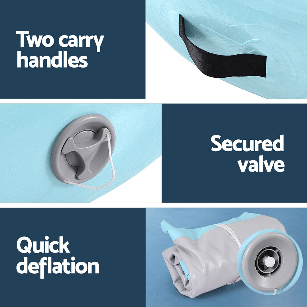 For hours of jumping, fighting and tumbling fun, the Everfit Air Track with pump is a great addition to your home gym. Perfect for gymnastics, martial arts, yoga, cheerleading and more, the 1m round air track is a versatile and essential tool for your training regime. Crafted with drop-stitched 1000-denier double-wall fabric, the Everfit air track ensures durability and stability during intense workouts. Softer than foam and designed for robust use, the air track won't twist or bend and helps to significantly reduce impact. Its anti-slip and wear-resistant surface provides a secure grip, allowing you to perform your moves with confidence. The integrated valve system allows for quick and easy inflation and deflation, while the compact roll-up design makes storage and transport a breeze. With two convenient carrying handles and a repair kit included, the Everfit 1m round Air Track is the perfect choice for athletes seeking a reliable and portable training solution.
