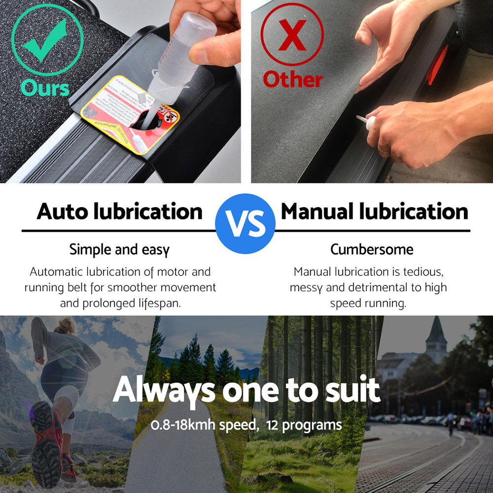 Everfit Treadmill Electric Auto Incline Spring Home Gym Fitness Exercise 480mm
