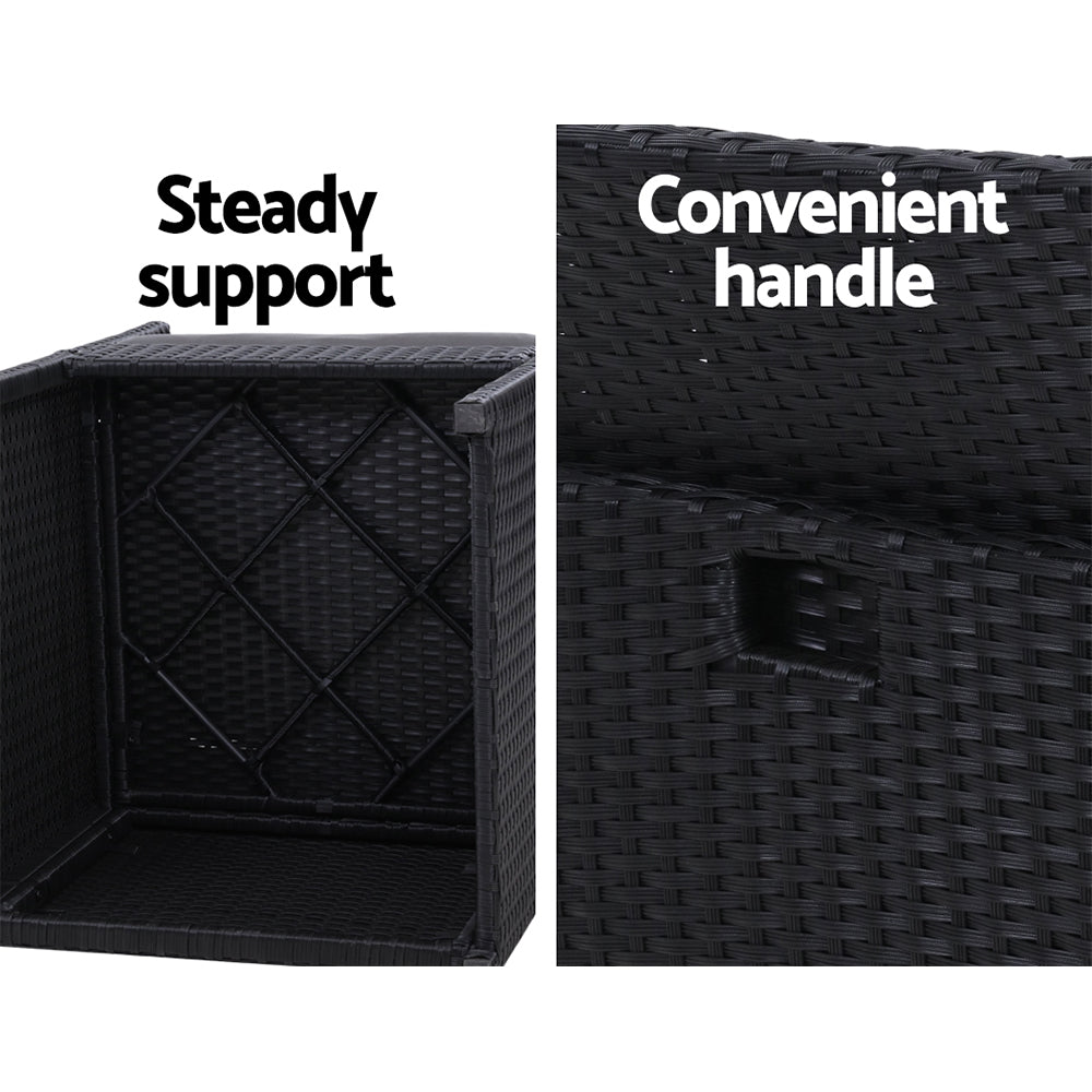 Enjoy the pleasant outdoors or have a nice chat with friends over a cuppa with our Gardeon Outdoor Bistro Set. With its chic and trendy profile, the set comes with a glass-top table and two wicker chairs. The elegant table is stunning in looks and equally as functional. The thick steel frame makes it durable and the 5mm thick tempered ripple glass does not only look stylish, it is easy to clean. Plus, there is a built-in hole for your parasol for you to relax outdoors for as long as you like during the hot summers without the fear of getting sunburnt. The chair is finished in meticulously weaved UV-resistant and weather-resistant PE wicker with a strong and sturdy steel frame construction. The exotic design, spacious seating and 5cm thick high-density foam cushions ensure comfort and style are always in place. Best of all, the removable and washable seat cushion cover makes cleaning up hassle-free. Together, the set is designed to please as well as stand up to the weather elements and the non-slip feet make the set suitable for use in even the most slippery of situations. With so much going for it, the bistro set certainly deserves its coveted space in your lovely backyard, deck or patio. Or even indoors for a unique presence.