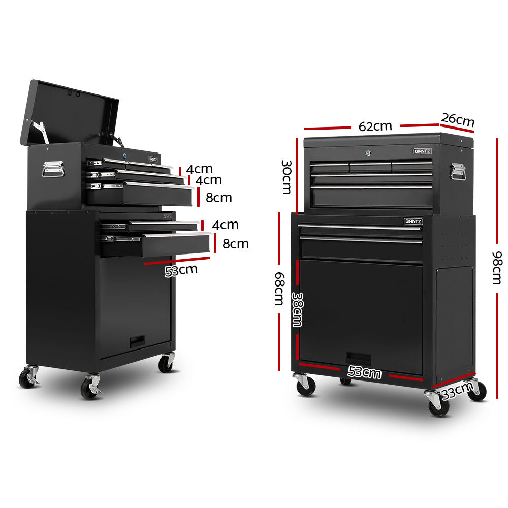 Giantz 7 Drawer Tool Box Cabinet Chest Trolley Toolbox Garage Storage Black