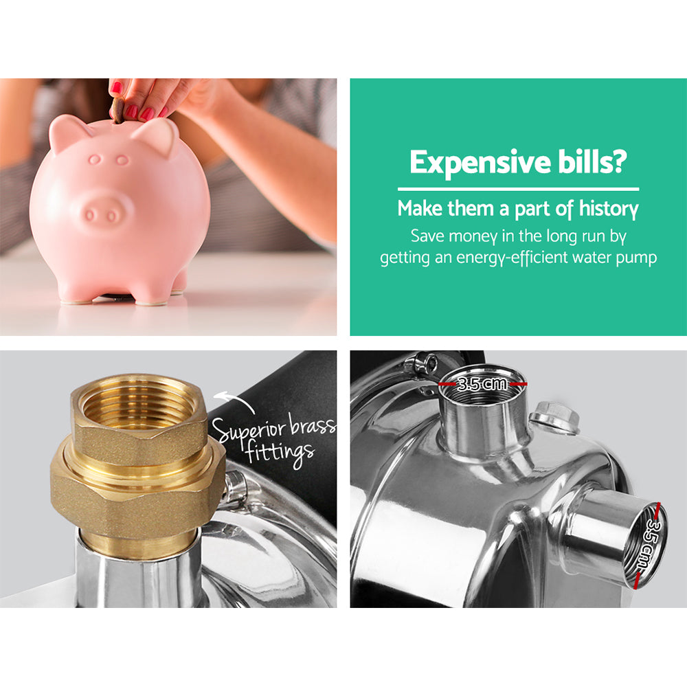 Made from durable stainless steel and alloy, this garden pump is the perfect water pump for your home and garden. It is ideal for connecting your rain tank or to irrigate your garden. This pump produces 72L/min makes it effortless in irrigating the garden or veggie patch. The pump has overheat and overload protections; makes it very safe to use.