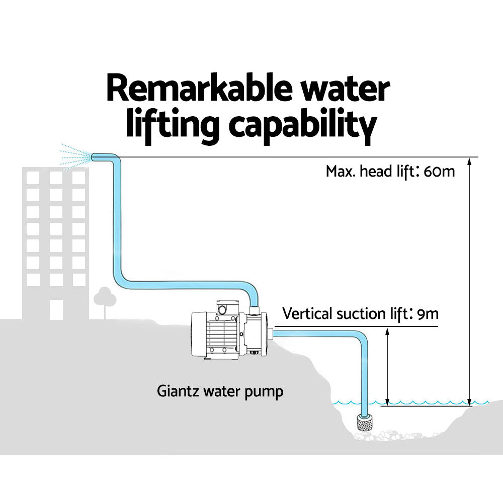 Giantz Garden Water Pump High Pressure 2000W Multi Stage Tank Rain Irrigation Black