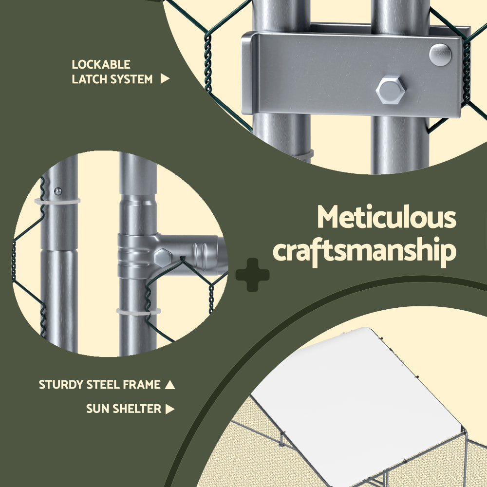 Give your beloved pets a safe and comfortable home to sleep, rest, and relax. The i.Pet's chicken coop has a spacious area to move around freely, which prevents them from feeling trapped or restricted. Not just for chickens, this pet cage makes a great home for geese and ducks too. It's constructed from a galvanised steel material for durable and long-lasting use. And wire sidewalls allow proper airflow and good ventilation. Nonetheless, the weather-resistant roof is perfect for keeping your pets safe during harsh weather conditions.