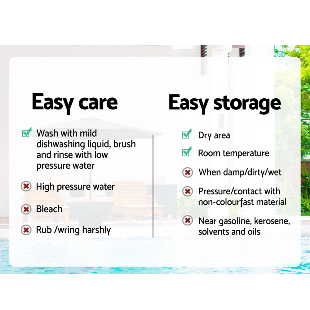 Soak up the sun, while staying cool under our Instahut centre post umbrella. Its steel supports an Octagon UV50+ canopy, ideal for the peak of summer. Made of water-resistant and wear-resistant polyester, it stands up to all sunny adventures. A water-fillable, portable base ensures beach-to-backyard versatility, while the washable canopy ensures freshness. Sunshine and shade, harmoniously blended for your summer escapades. Note: Umbrella base not included.