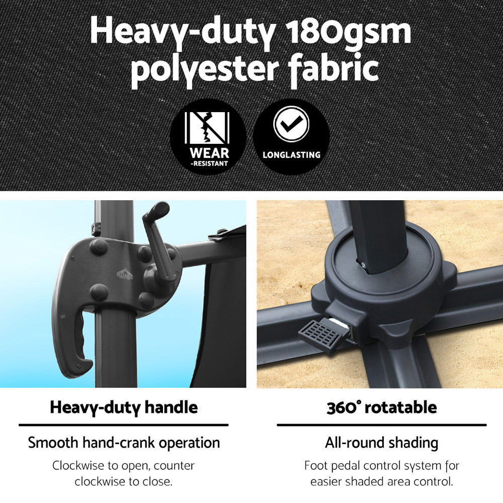 Instahut 3m Outdoor Umbrella Cantilever 360 Degree Tilt Beach Roma Black