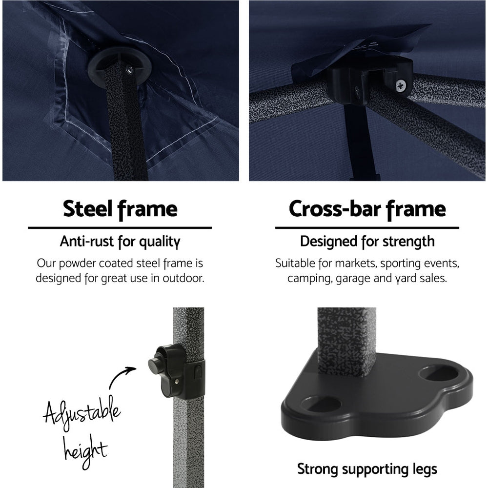 Instahut Gazebo Pop Up 3x4.5m w/Base Podx4 Marquee Folding Outdoor Wedding Camping Tent Shade Canopy Navy