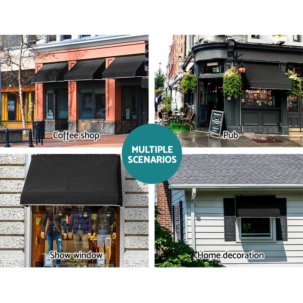 Instahut Window Door Awning 1.2mx0.6mx0.6m Black Polyester Fabric Steel Frame