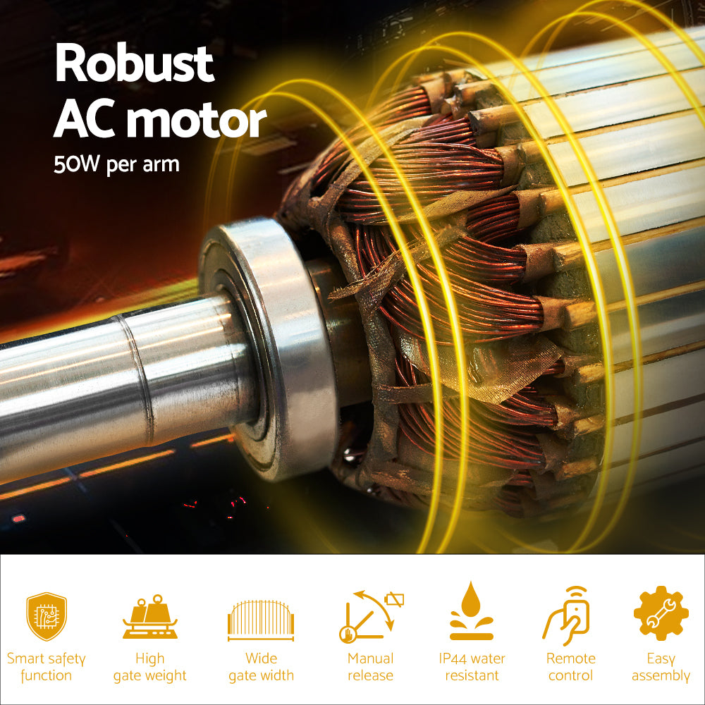 Lockmaster Dual Swing Gate Opener 20W Full Solar Power 600KG 10M
