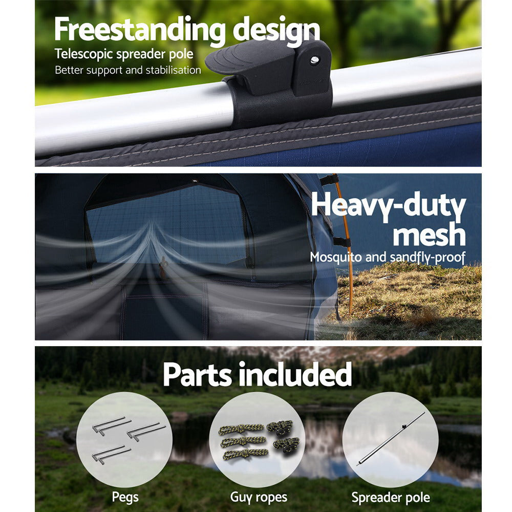Weisshorn King Single Swag Camping Swags Canvas Free Standing Dome Tent Blue