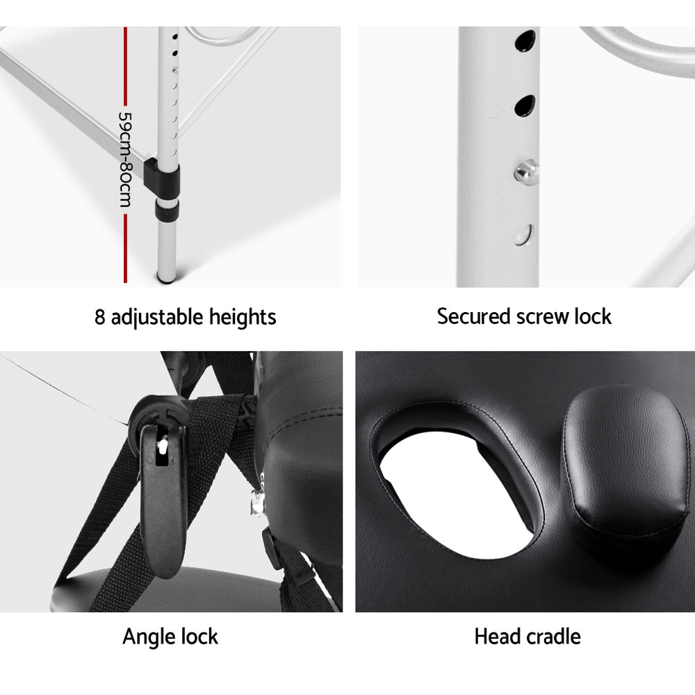 Zenses Massage Table 80cm Portable 3 Fold Aluminium Beauty Bed Black